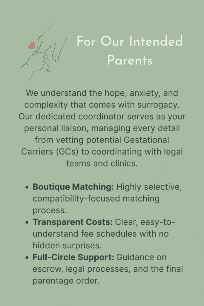 We recognize the emotional weight of this journey. Our support extends beyond logistics to ensure the well-being and security of every IP and Surrogate.
